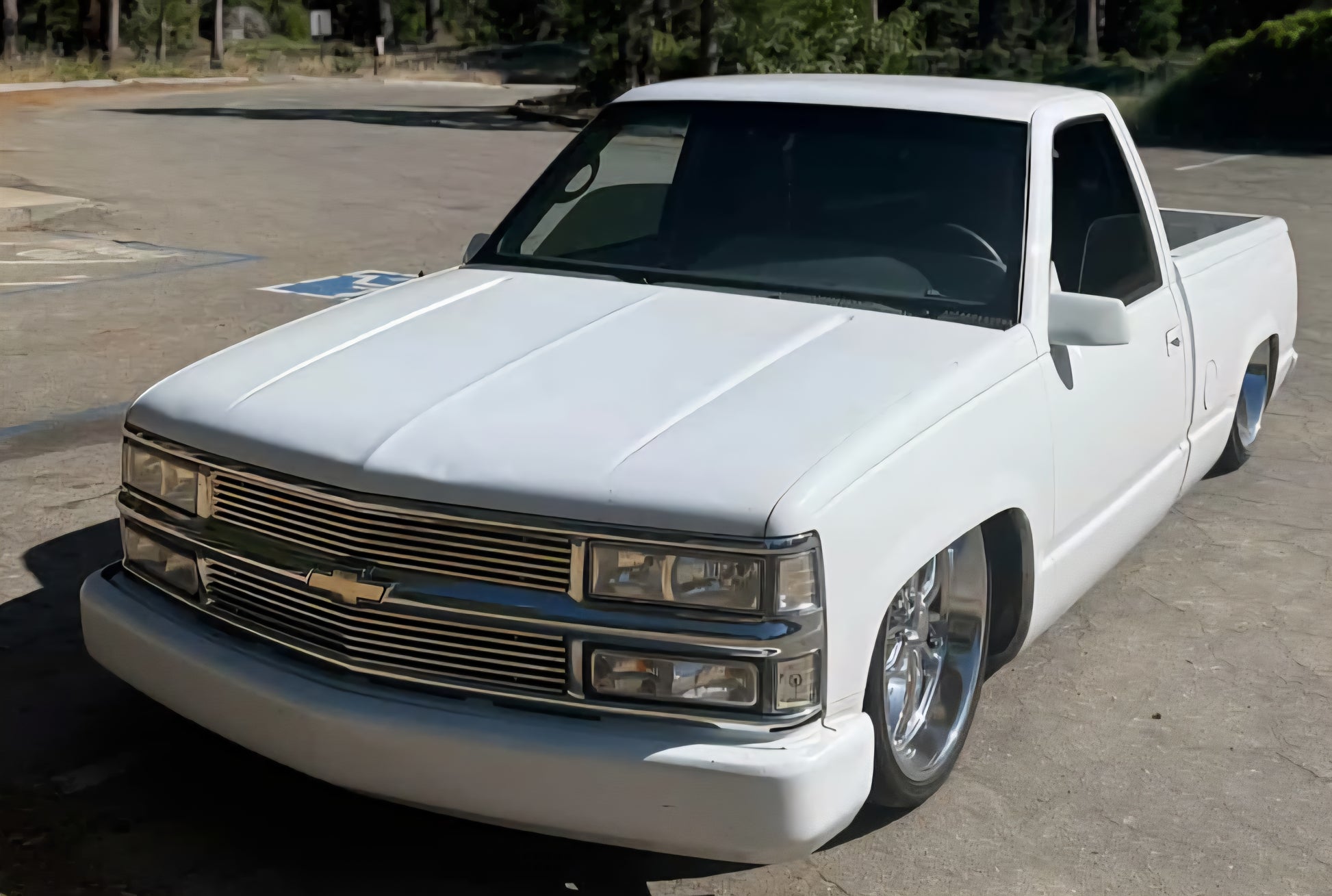 This is our new 88-98 Chevy/GMC c1500 2wd front control arm kit for airbags. It will lay 24" wheels on a 30 series tire OR 26" with a steering kit . The kit will include upper and lower control arms, balljoints,, busings, upper bag cups, and raised upper control arm mounts.